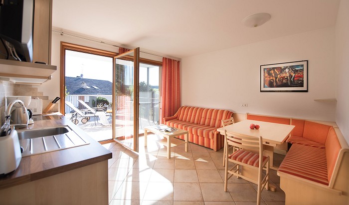Apartments Elisir is a Climate building of the last generation and is situated on a beautiful sunny hill 600 meters south from the center of Castelrotto. The well-equipped apartments are south facing and have a unique sun terrace. The famous Alpe di Siusi with its vast hiking area and the proximity to the Dolomites are within reach. A very nice trail starts right next to the house and leads to the nearby public swimming pool.